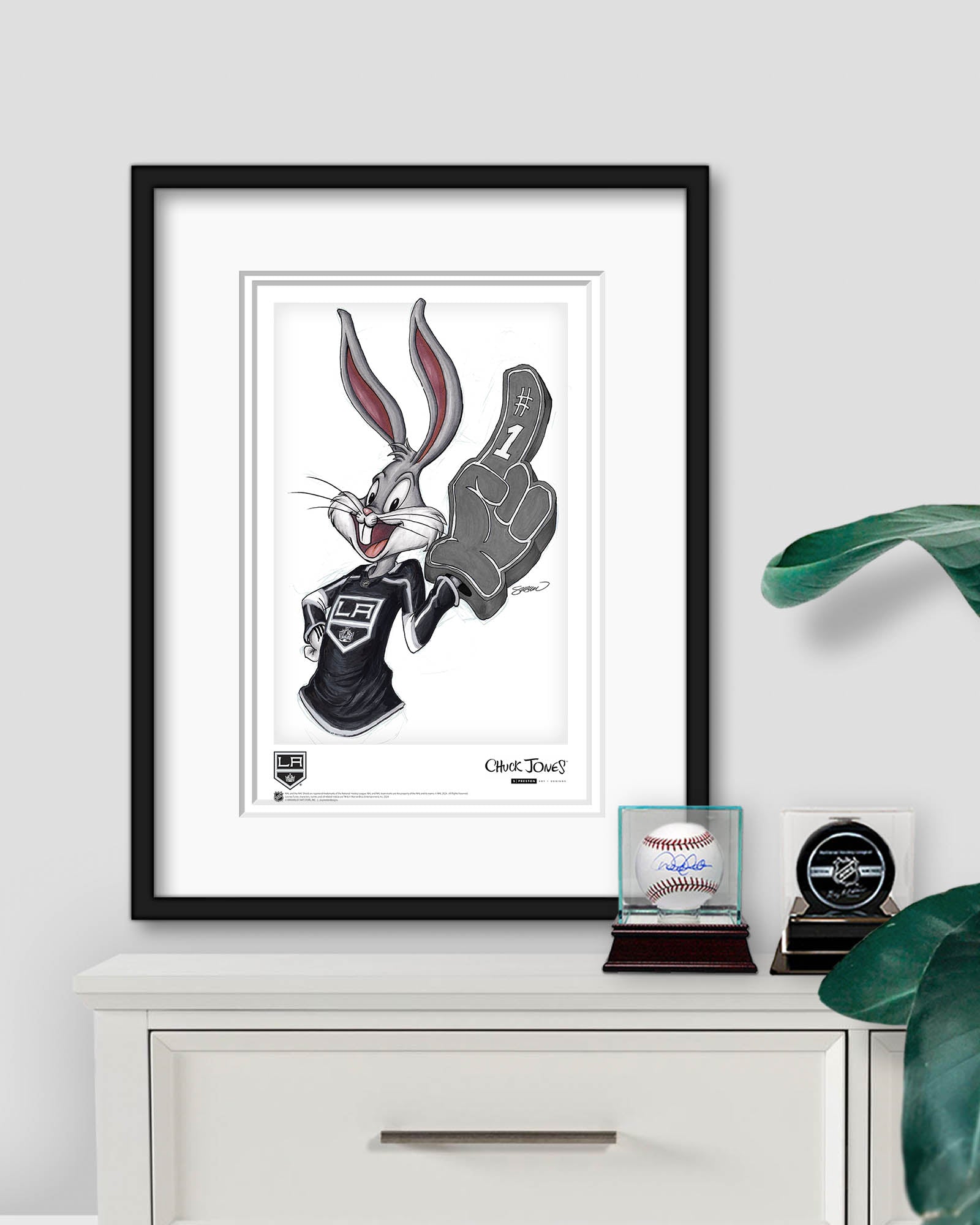 Bugs Bunny repping the Los Angeles Kings is a combination that just works, and S. Preston pulls it off beautifully. From the Rabbit Hockey Fan series by S. Preston, where Bugs Bunny finds his way onto every NHL team. This officially licensed NHL and Looney Tunes art print puts Bugs in a Kings sweater, and the result is something every Los Angeles fan will want on their wall. As seen in ESPN and Sports Illustrated. A must-have for any Kings fan who appreciates art that crosses generations and a gift that nobody else is going to think of.